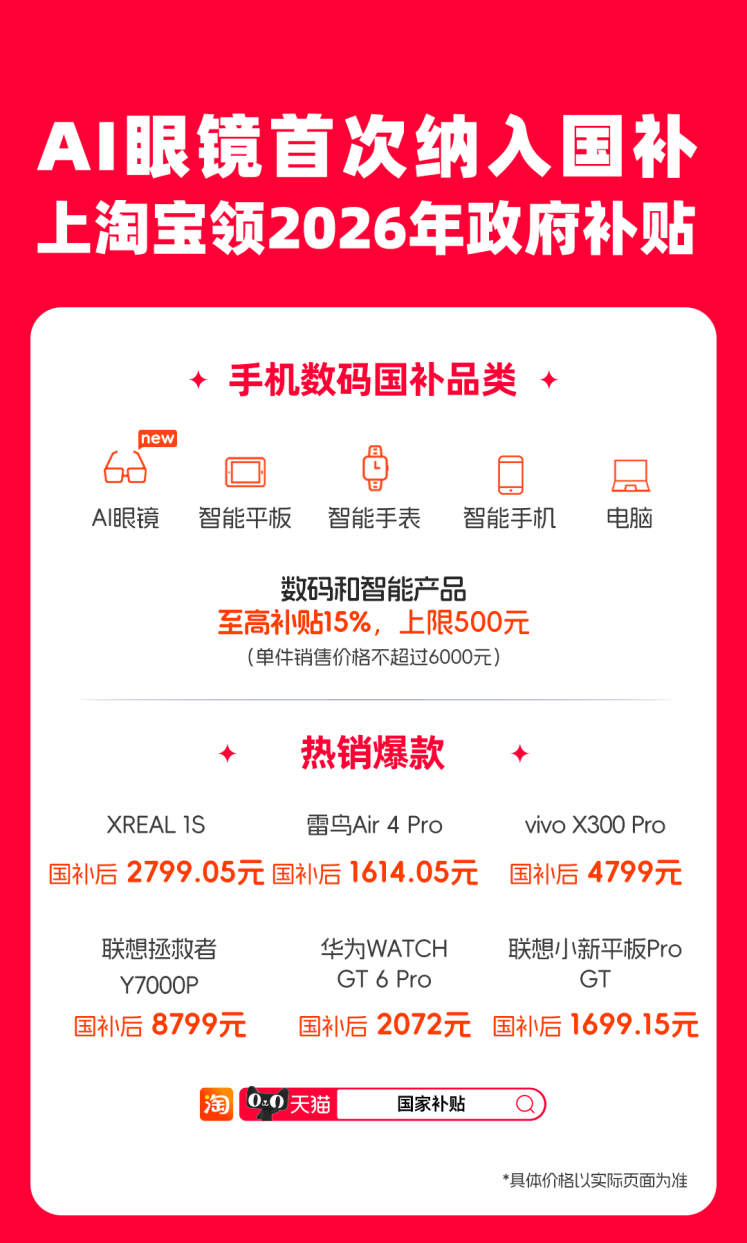 2026年新一轮的国度补贴来了,3C数码品类扩容,AI眼镜初度纳入补贴。