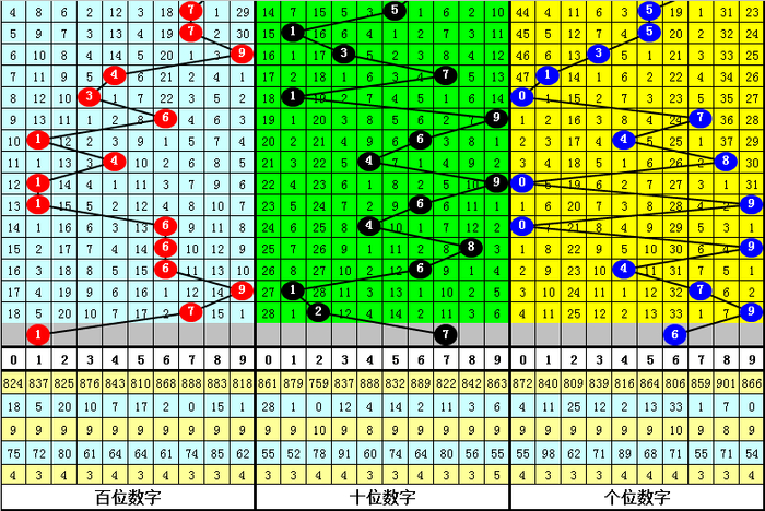 (2)在号码频次方面,开出个数最少的三个号码为:2、0、8,一般来说这三个号码不会同期出现;开出个数最多的四个号码分离为:1、4、6、7,本期看好这四个号码中包含1-2个开奖号码,胆码参考7。6。