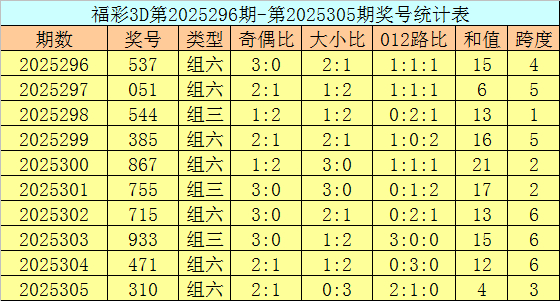 郑飞福彩3D第2025316期推选: